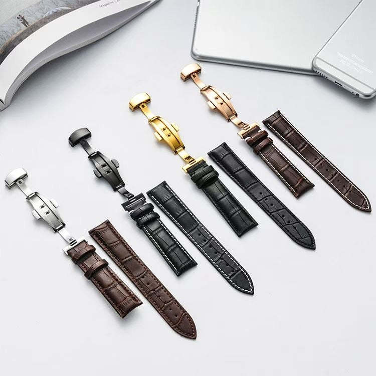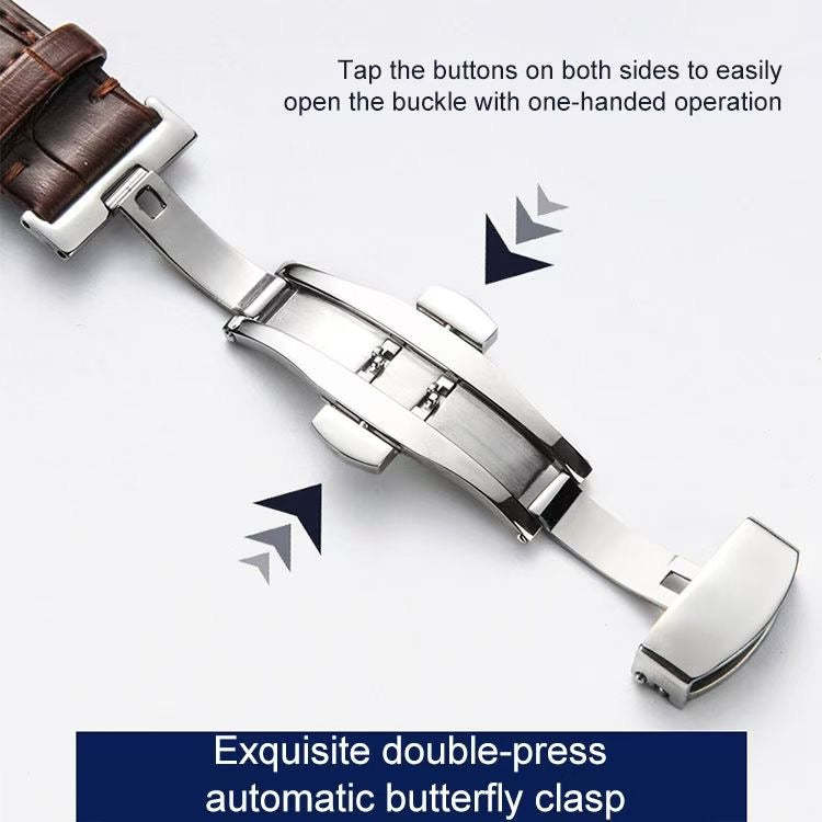 Crafted from premium genuine leather, this strap offers a refined look and exceptional comfort. The highlight is the double-press automatic butterfly clasp designed for one handed operation, it provides a secure fit while preserving the strap鈥檚 elegant shape.