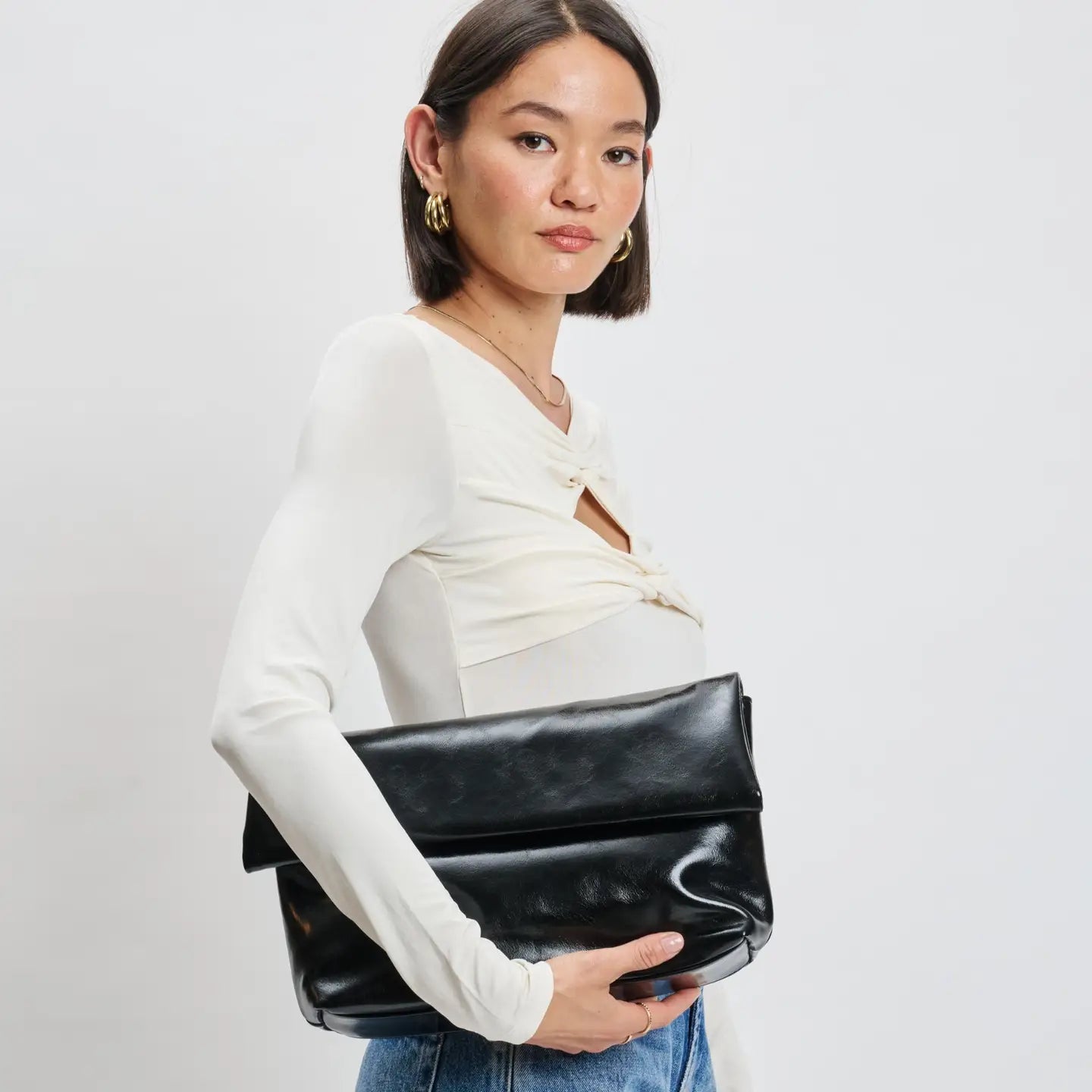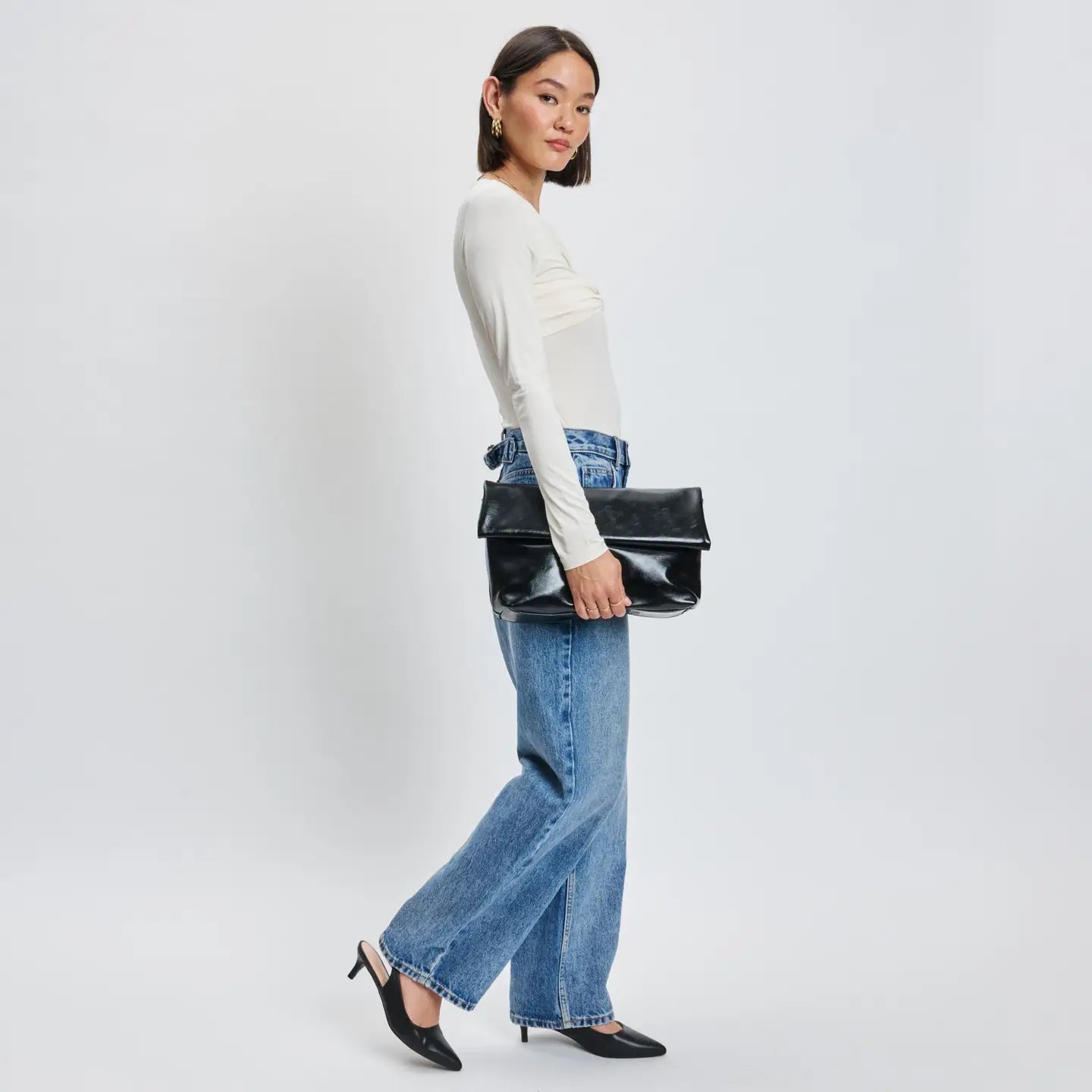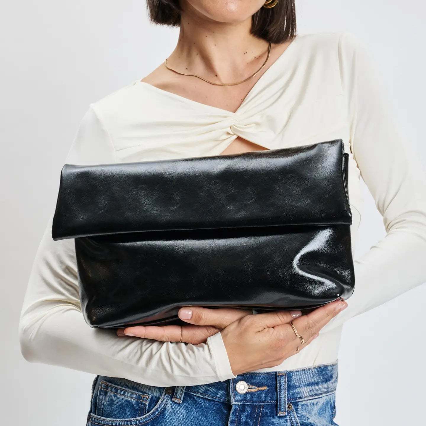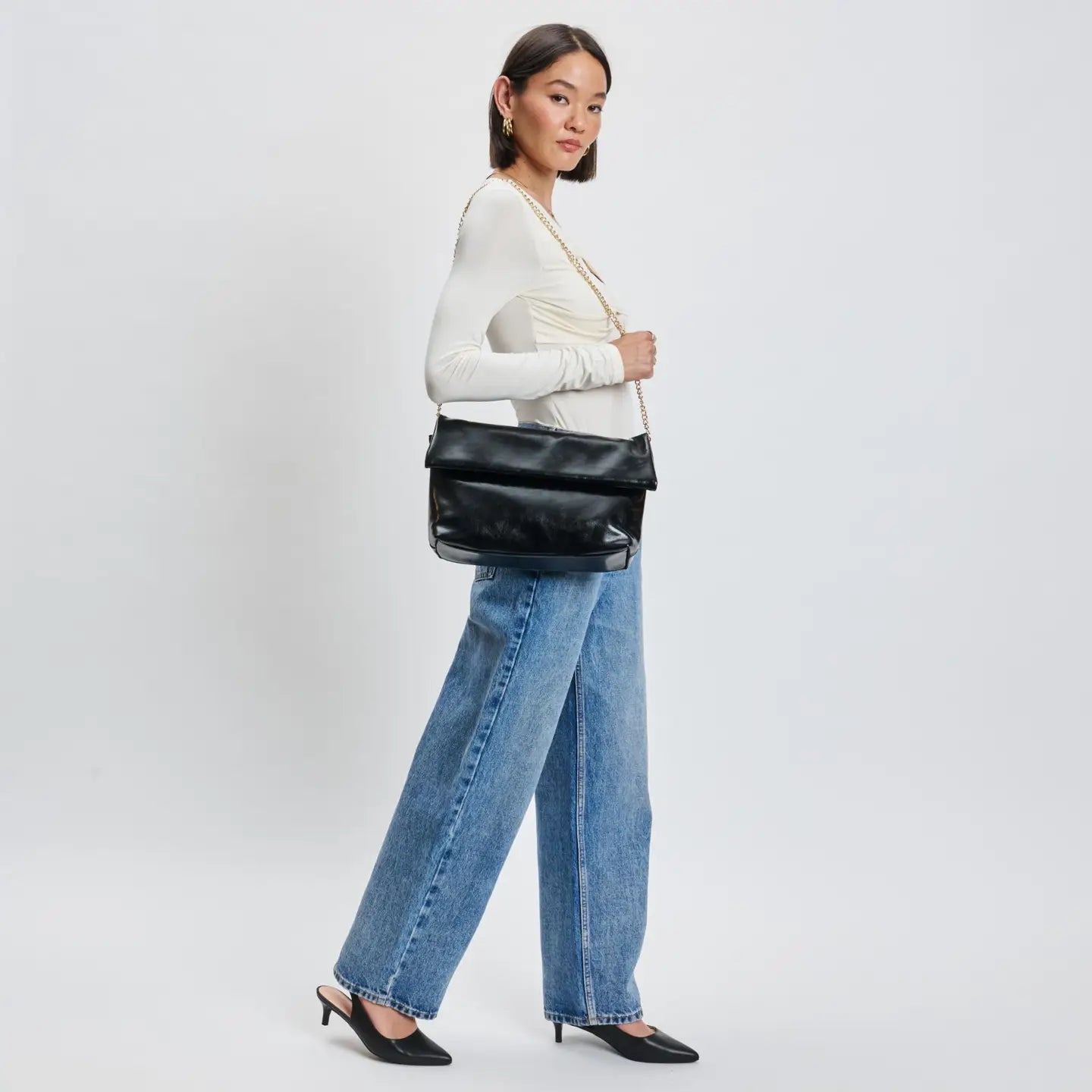 Step into sophistication with the Angela Crossbody, an essential addition to your collection. This versatile handbag features a sleek design that effortlessly transitions from day to night. The refined chain strap offers both style and convenience, allowing you to carry it comfortably. With a spacious interior and a discreet zip pocket, organization is a breeze. Crafted from high-quality materials, it delivers a luxurious feel without compromising on durability. Elevate your everyday look with the Angela Crossbody, the perfect blend of practicality and chic elegance. Make it yours today and embrace timeless fashion. *Item Type: Crossbody *Material: Vegan Leather *Closure: Magnetic *Exterior Details: Envelope Shape, Gold Hardware, Detachable Chain Strap, Hidden Back Zipper Pocket *Interior Details: Fabric Lined, 1 Zip Pocket, 1 Slip Pocket