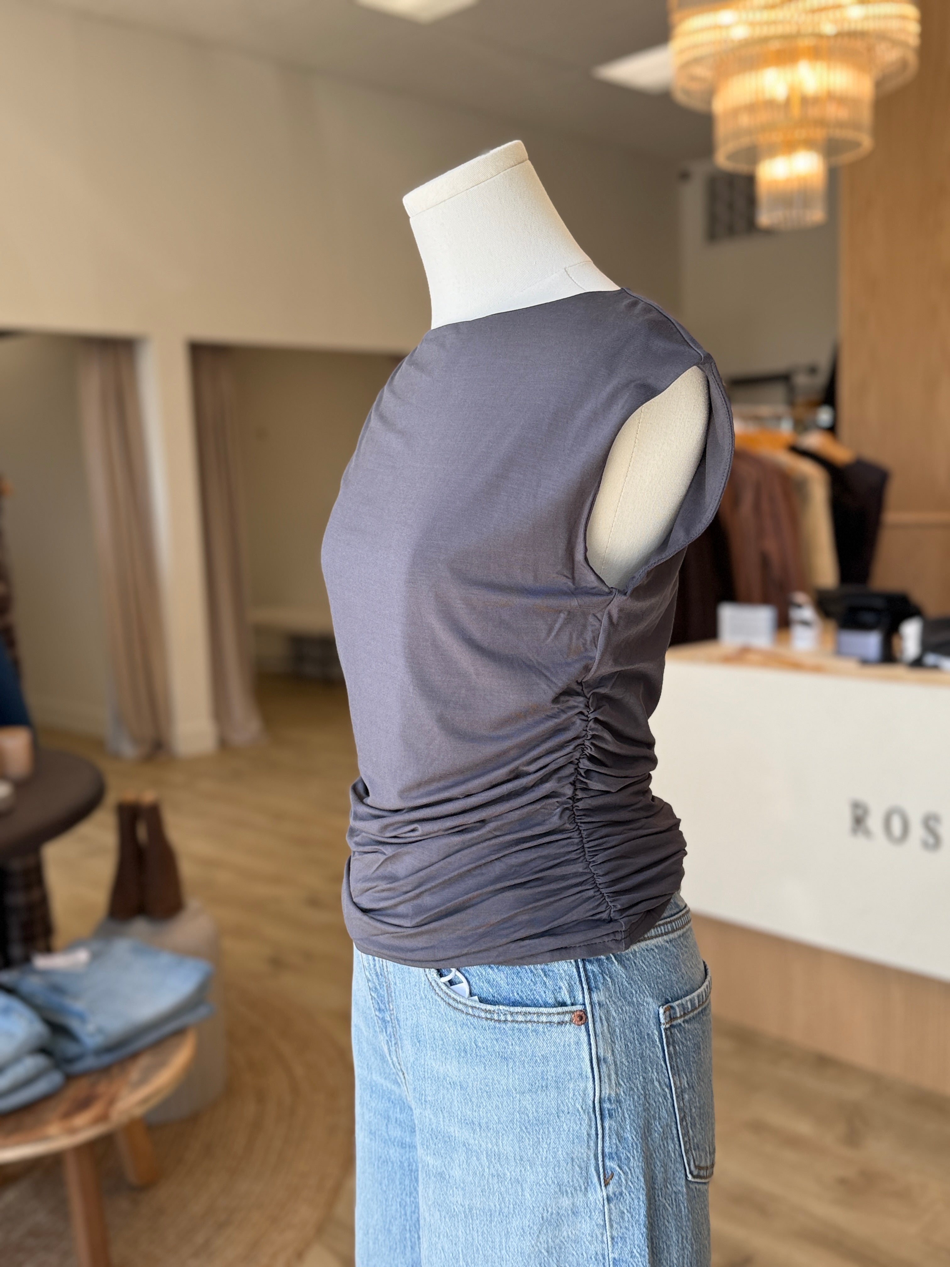 Soft double knit boat neck tank