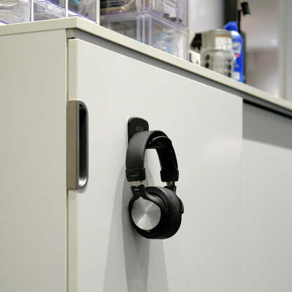 The Ducktail hanger's large and wide pad area makes it a great mount for headphones, game controller, cables, VR devices and more. It can attach on variety of smooth surface walls, cabinets, glass, monitors, desktop PC and gaming consoles.