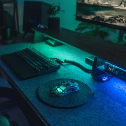 Crafted with a magnesium alloy body and a unique hollow-out design for ultimate comfort during heated battles. Illuminate your gaming experience with customizable RGB lighting, setting the mood for every battle.