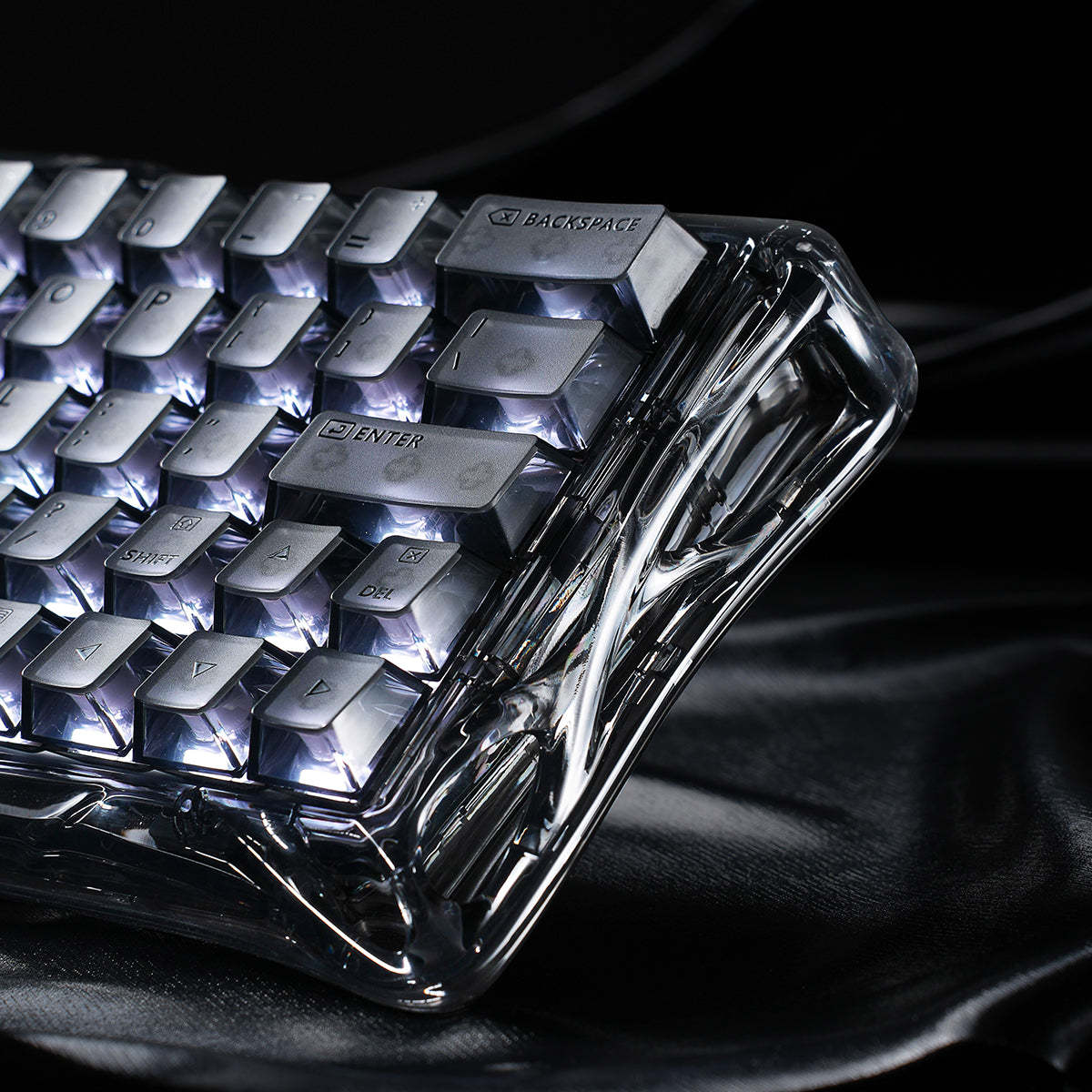 The Onyx Crystal colorway features a fully transparent premium plastic construction that showcases the keyboard's internal engineering while creating stunning RGB light diffusion. This futuristic design makes a bold statement on any gaming setup.