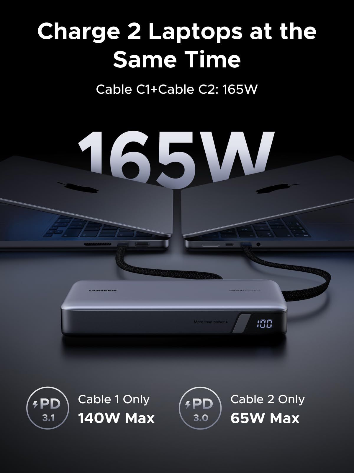 UGREEN Nexode Power Bank (25,000mAh, 165W, Built-in Cables)