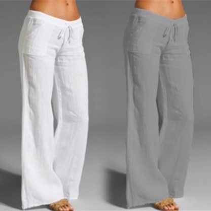 Women's Casual Solid Color Cotton Wide-Leg Pants