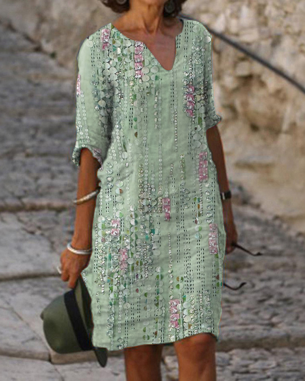 V-neck Casual Abstract Print Midi Dress