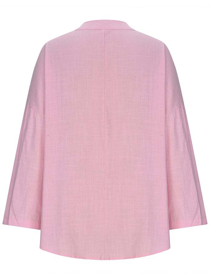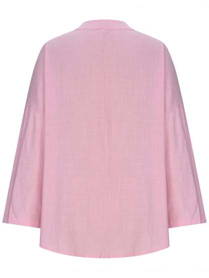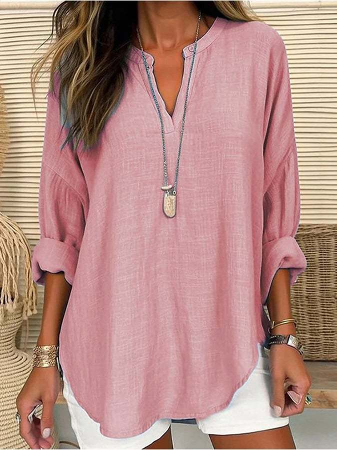 Women's Cotton Long Sleeve Round Neck Solid Color Loose Beach Shirt