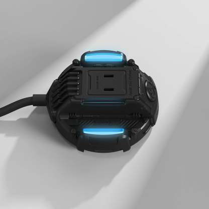 - Icy blue LED indicators