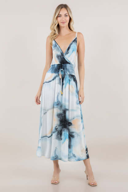 S/LESS V NECK SMOCKED MAXI DRESS D3881-MX-8154